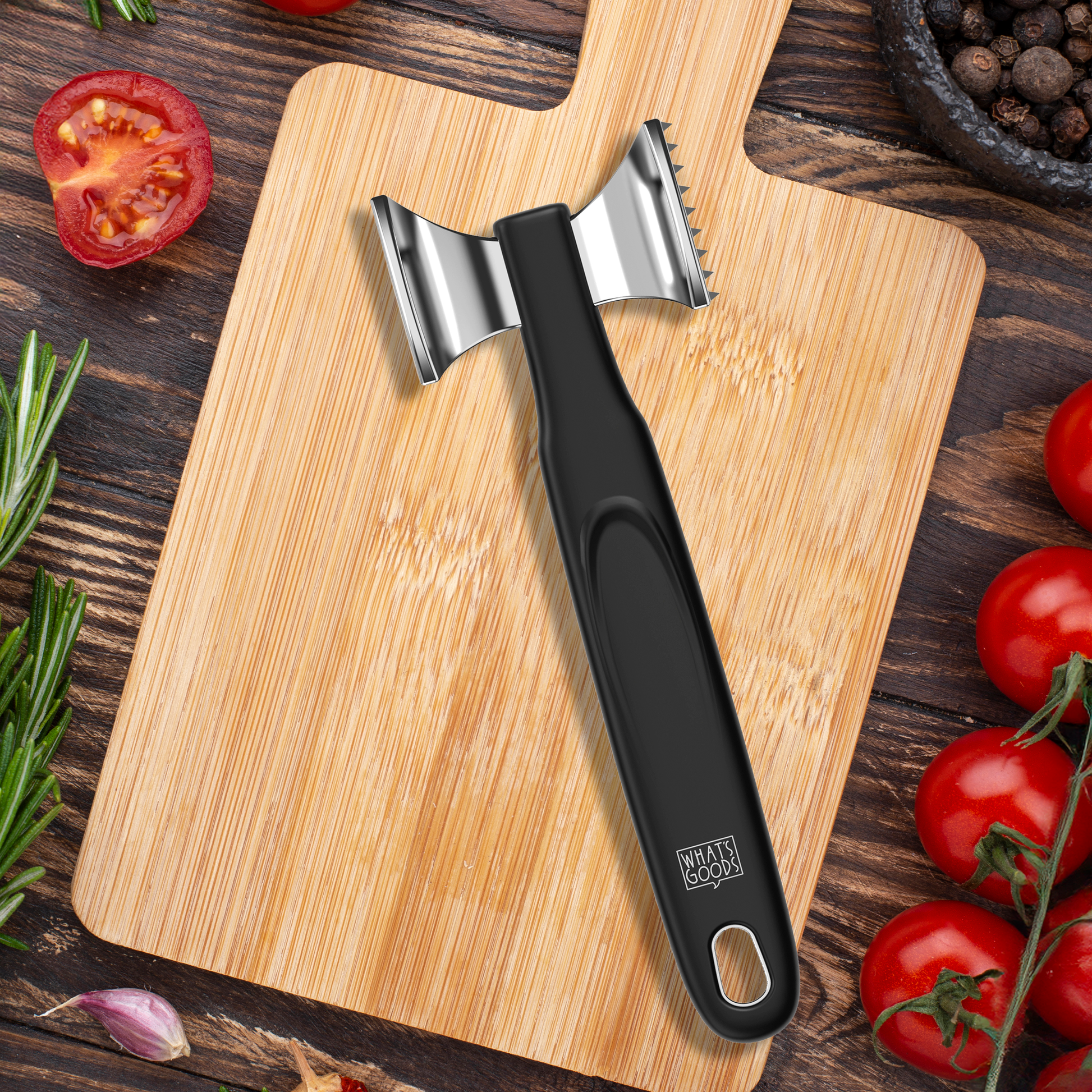 DE LAATSTE VLEESHAMER DIE U KOOPT! Deze robuuste vleeshamer is ontworpen om heel lang mee te gaan, en om letterlijk tegen een stootje te kunnen. De kop heeft twee functionele zijden: één kant met een ruwe structuur van kleine piramidevormige puntjes, ideaal om vlees mals te maken, en een volledig vlakke kant om vlees te pletten of uit te kloppen. Zo maakt u dat stukje kip goed plat voor een heerlijke schnitzel bijvoorbeeld!